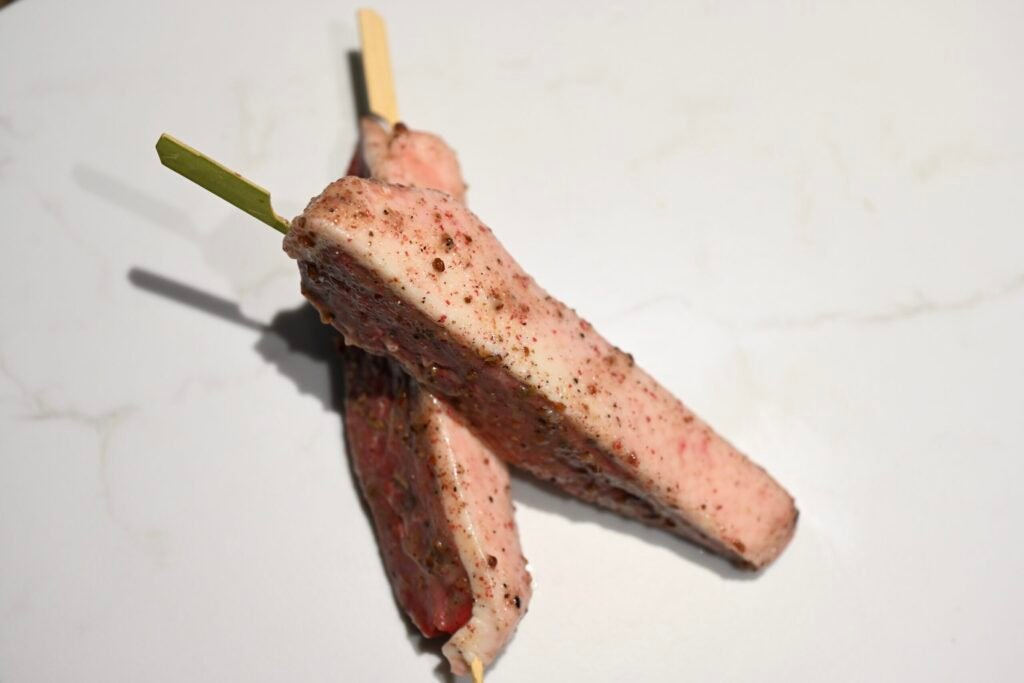 Brochette de magret de canard aux 3 poivres (+/-200g)