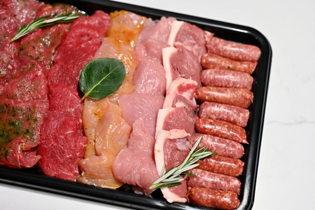 Boeuf,canard,dinde,porc,chipolata,mergez